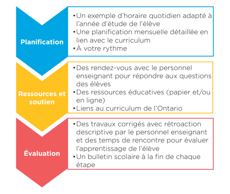 Les dernières années ont démontré que la fréquentation physique de l’école est le choix à privilégier pour la plupart des élèves afin de maximiser leurs chances de réussite et optimiser le développement des connaissances et des compétences. Toutefois, nous reconnaissons aussi que dans certaines situations, des familles peuvent être amenées à considérer d’autres options, telles que le programme ViaCorrespondance, pour la poursuite des apprentissages des enfants. Le succès de l’enfant qui participe au programme ViaCorrespondance repose sur la collaboration des familles pour le renvoi à l’enseignant des preuves d’apprentissage réalisées à la maison et pour l’appui des jeunes au quotidien. Il est donc essentiel que l’adulte qui appuie l’élève qui participe au programme ViaCorrespondance puisse lire et écrire en français.