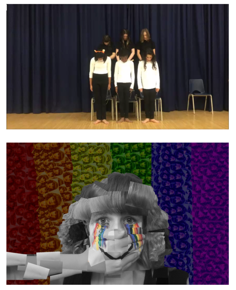 Pour sa part, l’École secondaire Georges-P.-Vanier a proposé un autoportrait réalisé par Charelle St-Aubin. L’œuvre de l’élève de 12e année a retenu l’attention du jury par sa force d’évocation. Le dessin montre une jeune tentant de sourire alors qu’une main lui recouvre la bouche. La présence de deux arcs-en-ciel l’un placé en arrière-plan et l’autre formant les larmes de la jeune fille complète le tableau. L’œuvre suggère l’impossibilité de s’exprimer pour la jeune fille qui est obligée de sourire et réfère également à la symbolique entourant la communauté LGBTQ+.