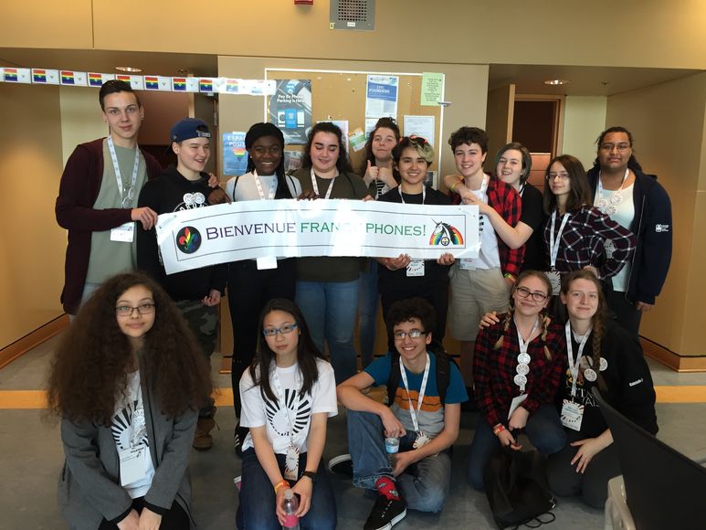Toronto, le 3 mai 2017 – C’est avec grande fierté qu’une vingtaine d’élèves de Viamonde, accompagnés de leurs enseignantes et enseignants, ont célébré la diversité et l’identité LGBTQ+ lors du Forum international Audace. Organisé par Fonds Égale Canada, en collaboration avec Viamonde, ce forum a réuni plus 200 jeunes LGBTQ+ et alliés en provenance du Canada, des États-Unis, d’Europe et d’Afrique du Sud. Ils se sont tous retrouvés à Windsor du 28 au 30 avril.