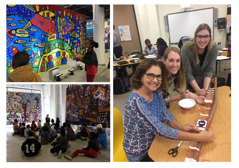 Plusieurs membres du personnel de Viamonde, ont eu l’occasion de participer à la fabrication d’un wampum représentant le traité « un bol et une cuillère ». Ce fût le cas lors de la formation des nouveaux enseignantes et des nouveaux enseignants qui s’est déroulée cette semaine à Brampton. Elles et ils pourront, à leur tour, faire connaitre cet instrument de diplomatie autochtone à leurs élèves pour les sensibiliser au respect et au partage du territoire. Pour leur part, des élèves de l’École élémentaire Gabrielle-Roy de Toronto ont pu découvrir les œuvres des artistes autochtones Norval et Christian Morrisseau lors d’une visite à la Galerie Thompson Landry. Une belle façon pour les jeunes d’en apprendre davantage sur la culture des peuples des premières nations.