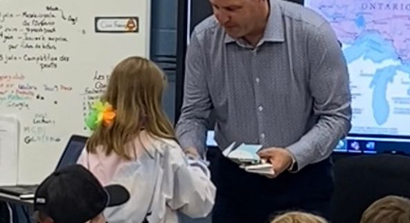 Avec l’appui de leur enseignante, les élèves ont rédigé une lettreopen_in_newCe lien s'ouvrira dans une nouvelle fenêtre officielle adressée au maire, M. Douglas Rawson, afin de proposer la création d’une version francophone du site web de la Ville de Penetanguishene. Ils ont également invité le maire à leur rendre visite en classe pour lui remettre leur lettre en personne et lui présenter les résultats de leurs recherches.