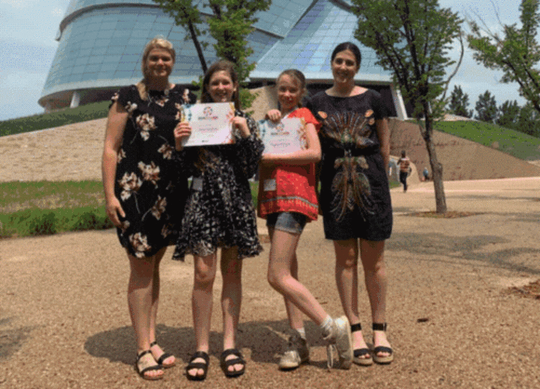 Les œuvres artistiques de Sophie Wilson et Nève Griffiths, élèves de 6e année à l’École élémentaire Pierre-Elliott-Trudeau, ont fait partie des douze projets gagnant du concours Imaginez le Canada, organisé par le Centre national de la vérité et réconciliationopen_in_newCe lien s'ouvrira dans une nouvelle fenêtre. Les élèves ont eu l'occasion de prendre part à une cérémonie nationale qui s'est déroulée le vendredi 9 juin dernier au Musée des droits de la personne, situé à Winnipeg, dans la province du Manitoba. Durant cet événement, les élèves ont eu l'opportunité de présenter leurs créations artistiques ainsi que le message de réconciliation qui les accompagnait.