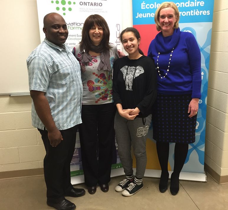 Toronto, le 08 mars 2017 –Mariam El Ghargomi, élève de 10e année de l’École secondaire Jeunes sans frontières de Brampton, a remporté le 2e prix du concours Dragon’s Juniors francophones de la région de Peel. À la formule de « Dragons’ Den », elle a présenté devant un jury formé d’entrepreneurs chevronnés son projet de démarrage d’une entreprise estivale. Mariam reçoit une bourse de 1 000 $ pour son projet C.D.M., des cours de piano et de solfège qui seront offerts durant l’été à des jeunes de 5 à 15 ans.