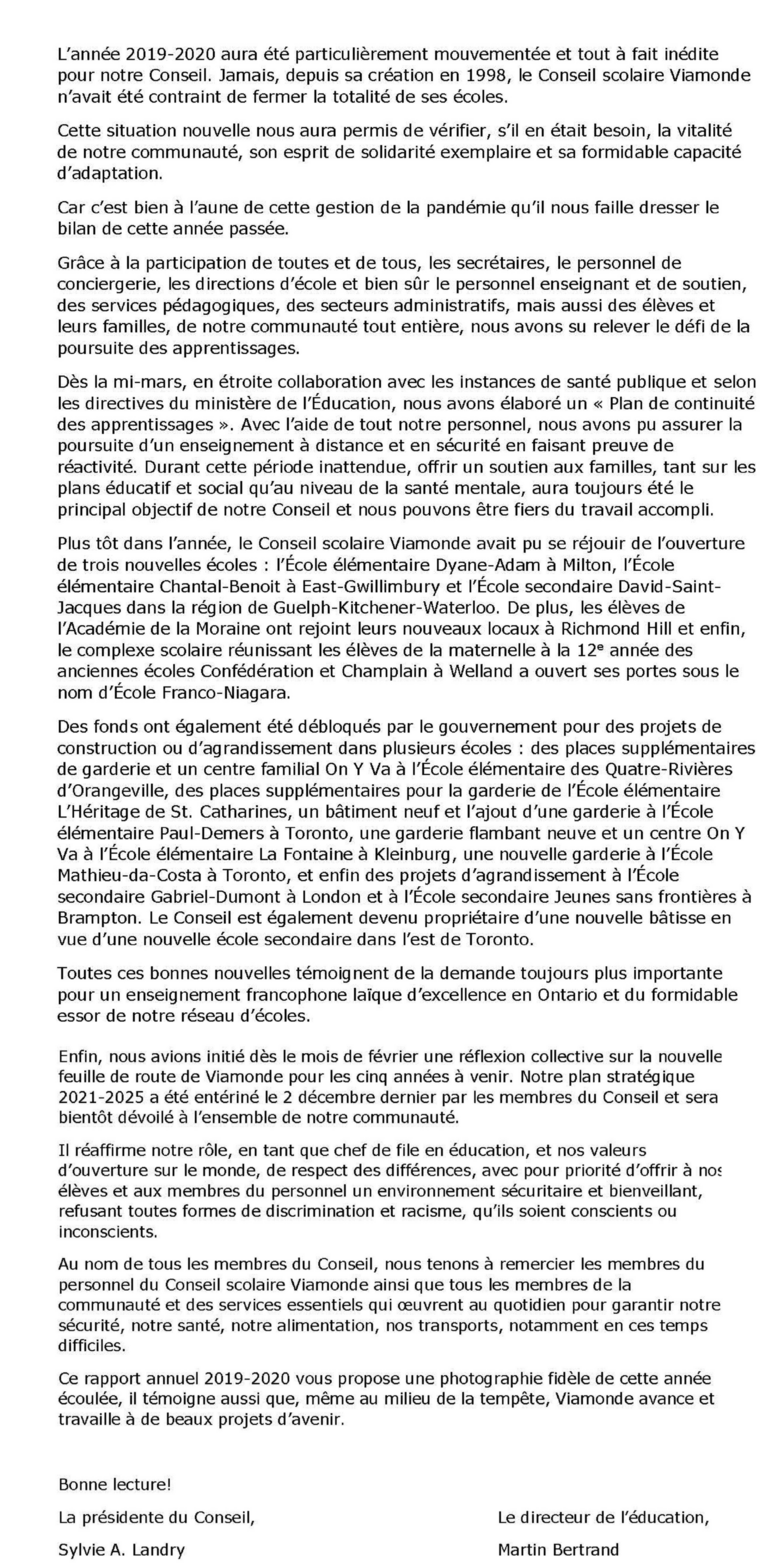 Mot de la présidente du Conseil et du directeur de l'éducation